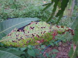 葉や花軸では黒い斑点を作り次第に大きくなります。