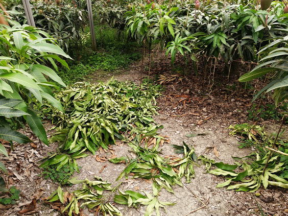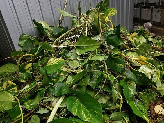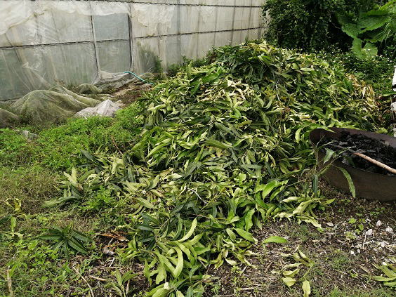5月26日(日) ![]() ![]() 自宅裏がすごいことになっていた。 わずか一畳ほどのスペースにポトスが自生してジャングル状態になっていた。 隣の敷地まで入り込もうとしていたので急ぎで刈り取っていきました。 山盛りのポトス、普通サイズのゴミ袋で10袋以上はありそうだ。 根は残っていてすぐに再生しそうなので、近々防草シートを敷いておこう。 ![]() ナムドクマイマンゴーが2個熟していました。 すぐにでも収穫したいところだけど出荷する時間がないんだよね... しばらくは樹上で追熟させて、 時間を作ることができればファーマーズへ出荷しよう。 |
