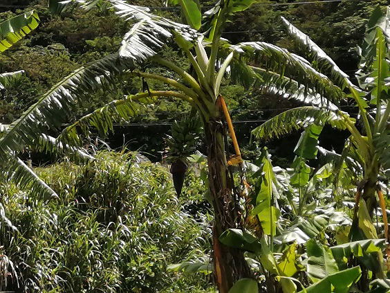 5月25日(土) ![]() バナナ園、バナナとバナナの間に植えてあるパパイヤの生育状況確認、 パパイヤ1個がいつの間にか熟していました。 重さ1キロはありそうな立派なパパイヤ、 甘い香りに誘われて虫が寄ってきていたので即収穫です。 |