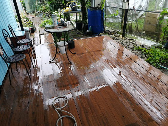 5月28日(火) ![]() ![]() 豪雨で事務所前のデッキが水浸しになったので、 泥汚れ落としを兼ねて水洗いをしました。 雨水で柔らかくなった泥汚れをデッキブラシで浮かし、 高圧洗浄機で洗い流していきました。 屋外の汚れ落としは雨の日に限るね。 これで多少の泥汚れは落ちただろう。 ![]() いい感じに肥大しています。 肥大期にまとまった雨が続いているおかげです。 収穫ピーク期まで残り1月半、 どれだけ肥大してくれるか楽しみです。 |