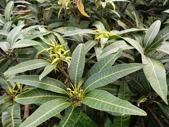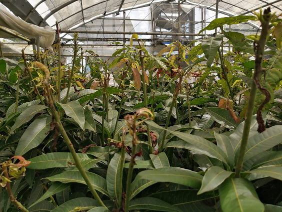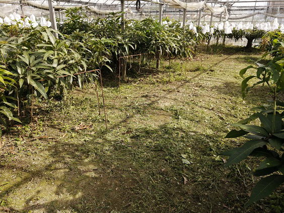 6月5日(水) ![]() 土曜日までは続きそうだよ、梅雨の晴れ間。 傘マークの日々に戻る前に屋外での作業を目一杯こなしていく。 本日のメイン作業は屋根ビニールを剥がしたマンゴーハウス内の草刈り。 第一マンゴーハウス内、ひざ丈まで伸びた雑草を草刈り機で粉砕です。 ![]() マンゴーの新芽がほぼ全滅... タマバエ被害なのは間違いないけど駆除できないのがもどかしい。 マンゴーの実の安全が優先です。 |