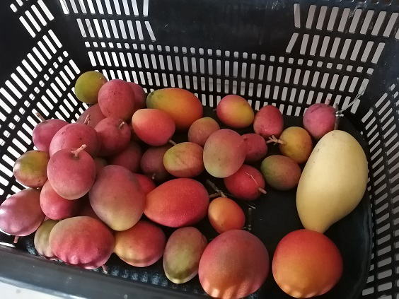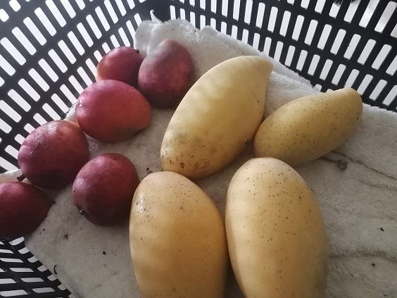 6月17日(月) ![]() ![]() ![]() 一週間分のマンゴーを収穫しました。 ミニマンゴーを中心にカゴ3つ分を収穫です。 樹上完熟で半分以上が食べごろ、 傷む前に明日にでも出荷しないといけなさそうです。 |