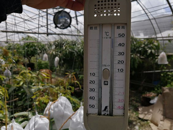 7月21日(日) ![]() マンゴーハウス屋根のビニールはとってあるのにこの気温、 たぶん40度をさしているのはおとといの過去最高気温の時のやつかな。 今日も暑さの危険度は「極めて危険」 熱中症にだけは気を付けて、 こまめな水分補給や休憩をとりながら仕事を進めていく。 ![]() 激熱直射日光の下での台風対策はかなり過酷だ。 暑いし息苦しいしで思考回路がおかしくなってくる。 何をどう進めていっていいのか分からなくなってしまうよ。 せまりくる台風対策のタイムリミットまで後2日、 やれるだけのことはやって今回も悔いのない台風対策にしたいと思う。 |