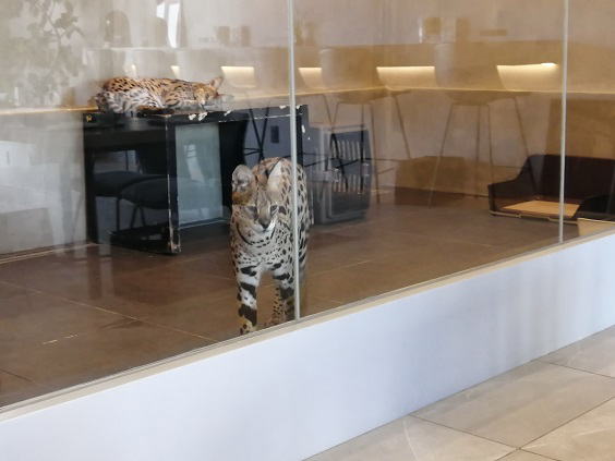 7月20日(土) ![]() ![]() パパイヤを収穫しました。 台風で全滅する前にとれるだけとって仲間におすそわけです。 1個1キロ以上が鈴なり、 先日収穫したマクワウリチャメ200gが小さく見えるね。 ![]() ![]() サーバルキャットのいるカフェに行った。 う〜ん、でかい! ガラス越しに見てると温厚そうで可愛いけど、 目の前に突如現れるとビビるだろうな。 大きさは猫の5〜6倍ってとこかな。 目つきの悪さはだけはうちの猫が勝っているだろう。 |