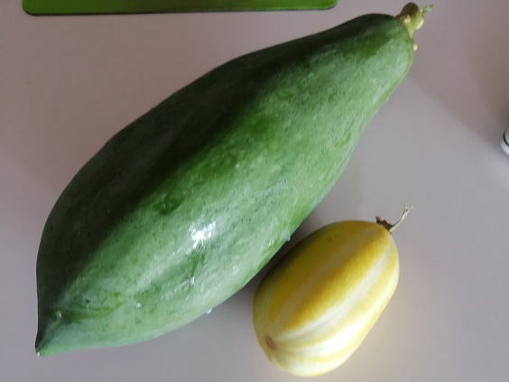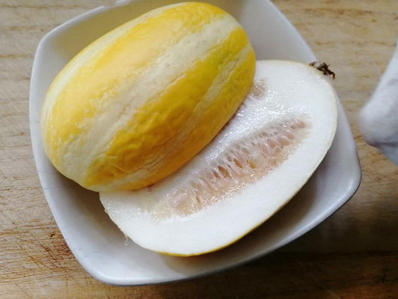 7月25日(木) ![]() ナムワーバナナ、追熟中です。 熟したら一日1〜2本を食べてこうと考えている。 果糖とはいえ糖質が高そうなのが気になるところだけどね。 ![]() 先日収穫した韓国マクワウリ「チャメ」を食ってみた。 切った瞬間周囲に漂うほどのメロンの香り、 食感はサクサク、ナシやリンゴに近いかな。 美味しいではあるけど何か物足りない。 今のところ育てるなら家庭菜園レベルだな。 |