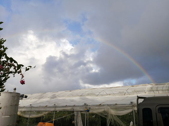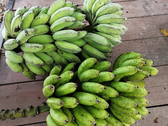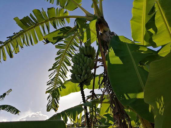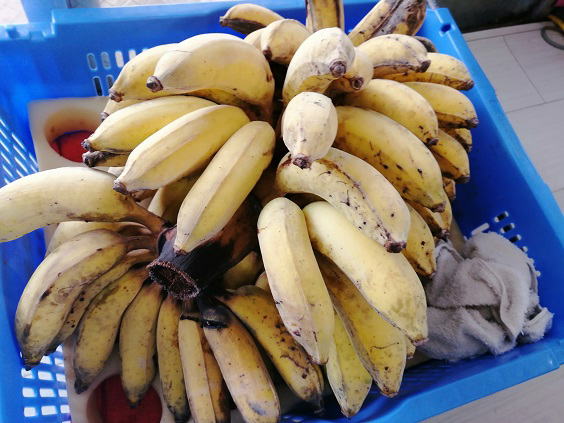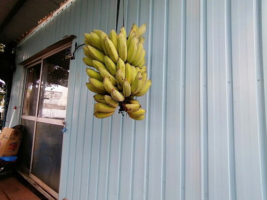 7月22日(月) ![]() ![]() 夜明け前のマンゴー園からの空の眺めは月の光が幻想的、 2時間後は虹がかかった空に見とれてしまった。 明日の空も楽しみだ。 ![]() ![]() 台風で倒木の恐れが出てきたため、 収穫期をむかえたバナナを収穫しました。 合計8房あったうちの2房を収穫、 残りはまだまだ未熟で収穫不可なので今回は収穫見送りです。 ナムワーバナナと島バナナ、 どちらももっちり美味しいバナナなので、 しばらくは朝食はバナナでいいかもね。 余った分は友人知人にお裾分けします。 |