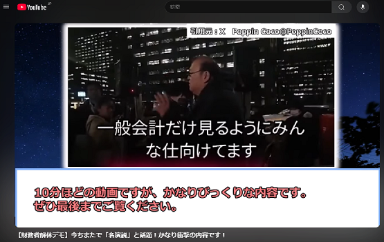 2月25日(火) ![]() タンポポを発見しました。 間違いなく春はすぐ目の前まで来ているようです。 ![]() テレビでは放映されていないらしいけど、 ネットではじわじわと広がりつつある財務省解体デモの情報。 増税増税で国民も我慢の限界に達してきているようです。 今後の動きに大注目です。 |