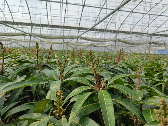 2月8日(土) ![]() マンゴーの花軸が伸び始めてきました。 まだまだ寒い日が続きそうなので今はゆっくり生長してほしい、 なので満開期は例年よりも遅らせたほうがよさそうだな。 今年の満開期は3月中旬頃を目指します。 ![]() 予定していたビニール張り作業を中止にしました。 寒さと強風と雨の中での作業は体によろしくないのでね。 |
