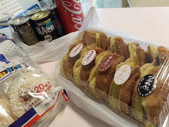 6月17日(火) ![]() 袋かけの悪い事例です。 頭に色がのっていません。 袋を開けて実を日光に当てます。 数日後には真っ赤なマンゴーに仕上がります。 ![]() いただいたお菓子で10時休憩です。 |