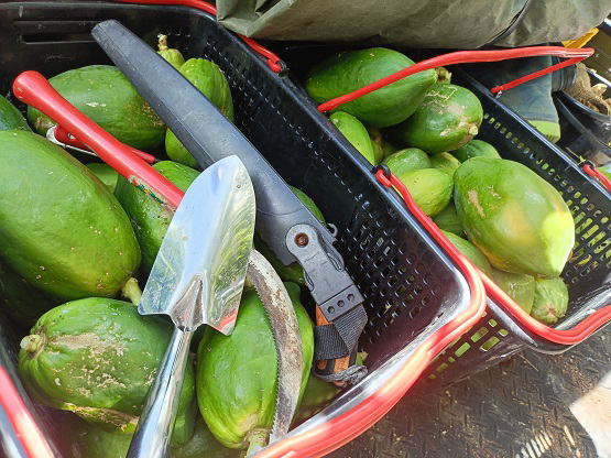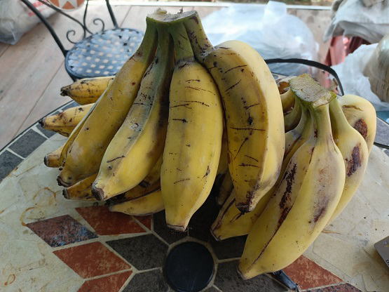 6月23日(月) ![]() ![]() 高く伸びすぎたパパイヤの切り戻しをしました。 切り戻し方はよくわからないが、多分これであっているだろう。 収穫した実はFMへ出荷します。 ![]() 2日前に収穫したバナナが熟してきた。 たぶん品種はアップルバナナだが、 もっちりバナナのネーミングで直売所で販売しようかと検討中。 早速FM売り場のバナナ情報を調べてみたけど山積み状態らしい。 バナナは収穫時期が被るし傷みやすいのでマジ困る... どうやって売るべきか思いつかないよ。 |
