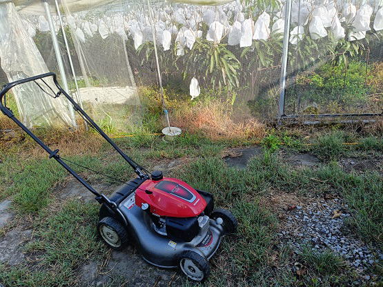 7月25日(金) ![]() 残ったマンゴーもあとわずかとなったので 収穫出荷の合間に片付けをしていくことにしました。 まずは実を吊上げてた紐を取り外していきました。 紐がなくなると障害物がなくなり残った実の収穫が少し楽になります。 ![]() 第二マンゴーハウス横の草刈りをしました。 膝丈あたりまで伸びた雑草を刈っていきました。 雑草の高さ20センチほどなら何とかって感じだけど、 膝丈だとロータリーモア内にすぐに葉がつまり、 面倒だけど一度エンジンを止めてかき出すことになる。 その作業を何度も繰り返すことになる... 夏場の伸びすぎた雑草の草刈りにはロータリーモアは不向きかもです。 |