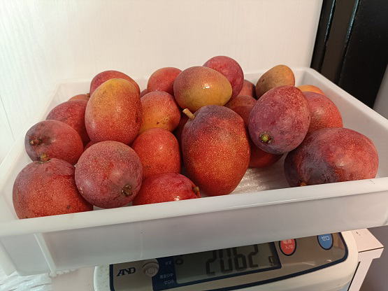 7月18日(金) ![]() ![]() マンゴーの収穫量が増加してきました。 これでやっと本格的に注文分のマンゴーの発送ができるよ。 手術後の低下した体力も8割は回復したと実感している。 いいタイミングで繁忙期をむかえられそうだ。 |