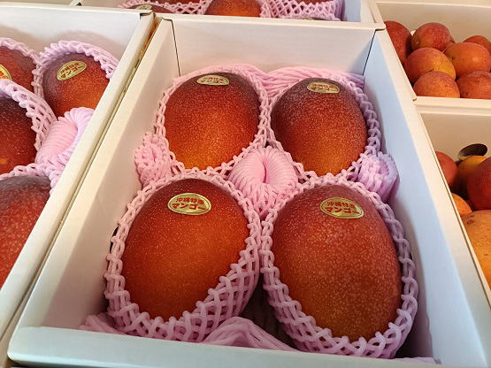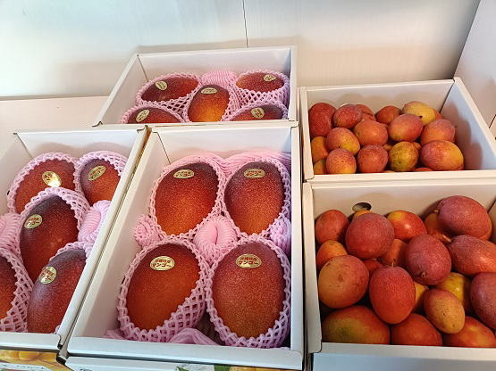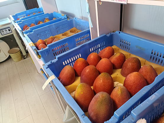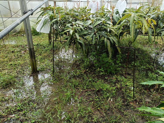 7月24日(木) ![]() 第一マンゴーハウス内では所々に水たまりができています。 こうなってしまうと確実にマンゴーの糖度に影響がでているはずです。 豪雨前の糖度は17度以上あったから15度くらいまでは下がったかな。 最低ラインの13度以下にならないよう祈るばかりです。 ![]() 玉文マンゴーを収穫しました。 大玉系だからなのか熟し方が均一ではありません。 熟し始めはお尻からで頭まで熟するまで時間がかかります。 |
