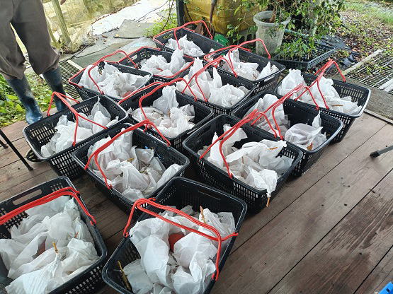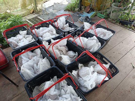 7月21日(月) ![]() ![]() 第一マンゴーハウスは7割ほど収穫をおえました。 発生した新芽や自重で下がった実で 白い袋が葉の中に沈んでしまって酷いありさまです。 体力、時間ともに足りてないので手直しができません。 悔しいけど優先順位を考えて収穫出荷作業を進めていきます。 ![]() 栄養ドリンクをいただきました。 勝負の一週間、全力で頑張ります! |