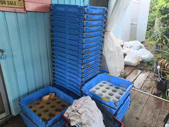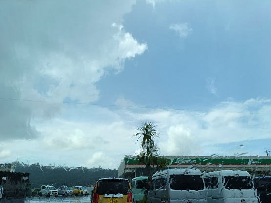 8月3日(日) ![]() 目標だった2日で50箱を売ることができました! 終盤なので質がそろわず、 秀品マンゴー、優品マンゴーを混ぜての箱詰めでしたが、 まあまあ赤味がありキレイめだったのがよかったかもです。 ![]() 今日も2時間ほど土砂降りの雨が降った。 マンゴー園の上空は雨雲の通り道っぽいです。 雨が止むまでは屋根下でコンテナの片付け作業をしました。 |