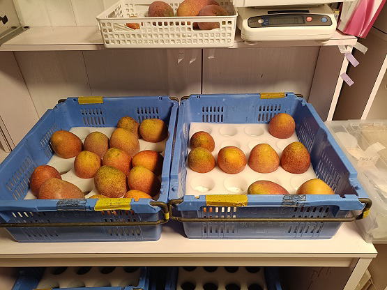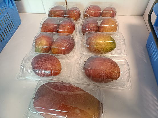 8月25日(月) ![]() ![]() 収穫後に常温追熟、 10日ほどたち食べごろと判断したので発送をしました。 キーツは完熟具合を判断するのが少々難しいマンゴーですが、 収穫のタイミングと追熟期間を間違わなければ美味しく頂けます。 |