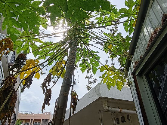 8月6日(水) ![]() ![]() 自宅裏に自生してるパパイヤ3本中1本はオスパパイヤです。 このままだといつまでたっても実を着けないので、 ある方法を試してみることにしました。 うまくいって実を着ければそのままに、 実が着かなければ切り倒します。 |