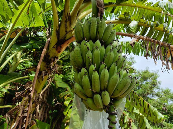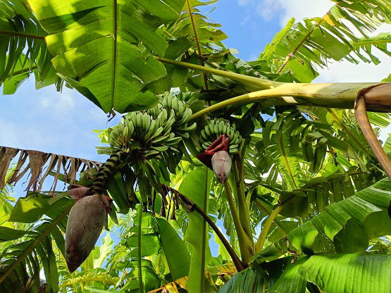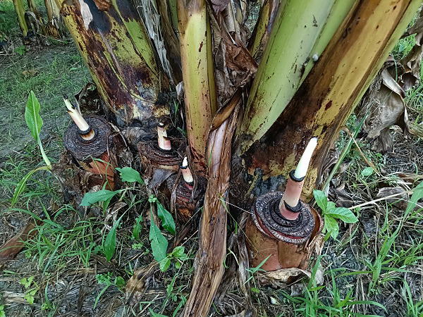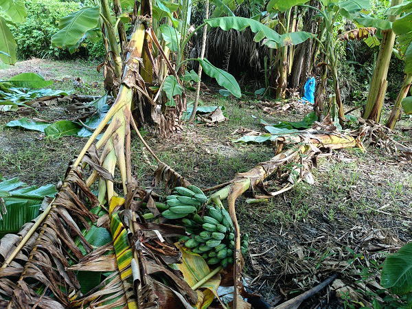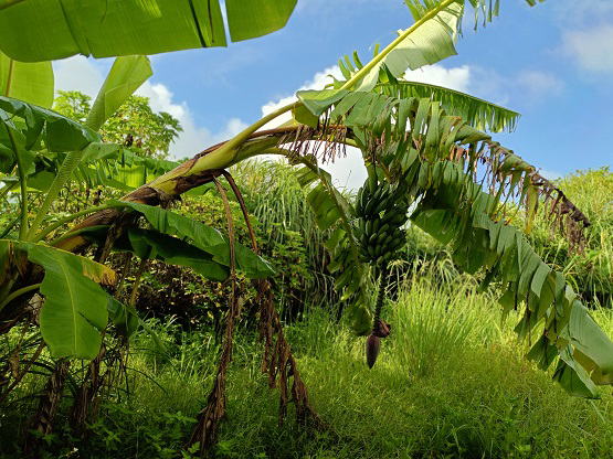 8月24日(日) ![]() ![]() バナナ園がすごいことになっていました。 木の数を一か所2〜3本に収めたかったけど ひと夏で10本近くまで増えてしまっています。 肥大した実の重みで数本折れていました。 今後の対応、栄養分分散を防ぐため木の間引き、 倒木防止のため実が着いた木への突っ張りたてをしていきます。 |