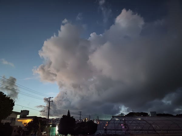 8月27日(水) ![]() 夜明け前のマンゴーハウス上空にやってきた雨雲は大迫力だった。 低空をゆっくりと移動していく様はすごい存在感だ。 雷もなければ雨も降らず、何事もなく去っていったことに安堵した。 ![]() 久々にプロジェクターで映画を見ました。 途中何度も睡魔に襲われては数分寝、そのたびに巻き戻し再生、 なんとか寝落ちせず夜8時過ぎには見終わることができました。 映画の内容はほど頭に入ってこず、 どちらかというと睡魔と戦った2時間になってしまった。 |