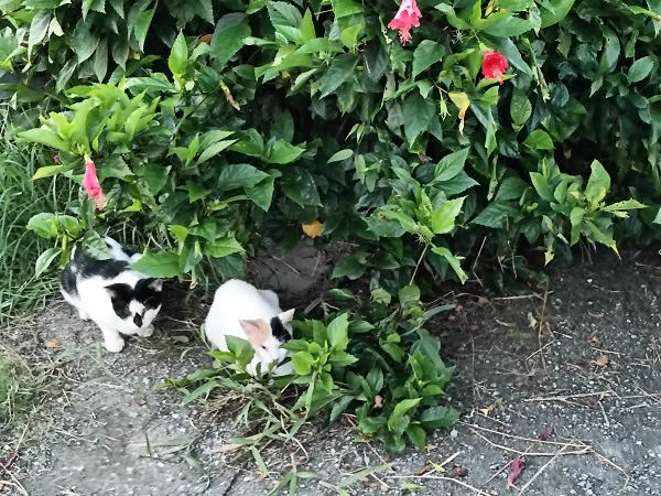 8月26日(火) ![]() ![]() とあるマンゴー農家仲間に会いに行ってきた。 そこのマンゴーハウス前は何時も猫がいっぱいいる。 多すぎるうえによく路上寝をしているので、 たまに車にひかれて死んじゃう猫もいるそうだ。 可哀そうな猫を増やさないためにも、 地主さんにさくら猫活動のことを話しておこう。 |