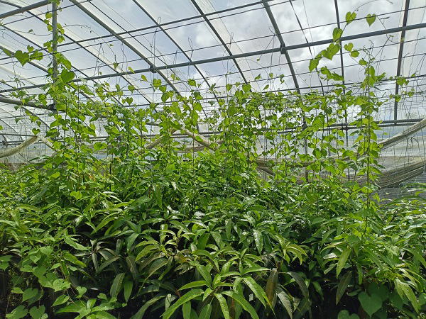 9月15日(月) ![]() マンゴーの上に伸びた枝、立枝の誘引をしました。 マンゴーの枝は暑い時期は枝がしなりやすくよく曲がる、 逆に気温が下がれば下がるほど枝が固くなり折れやすくなります。 なのでまだまだ高温の続く9月中に立枝の誘引をしていきます。 熱中症には気をつけながら誘引作業を進めていきます。 |