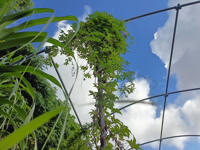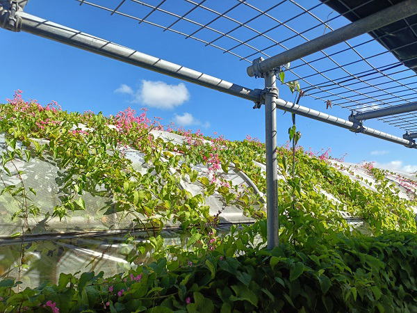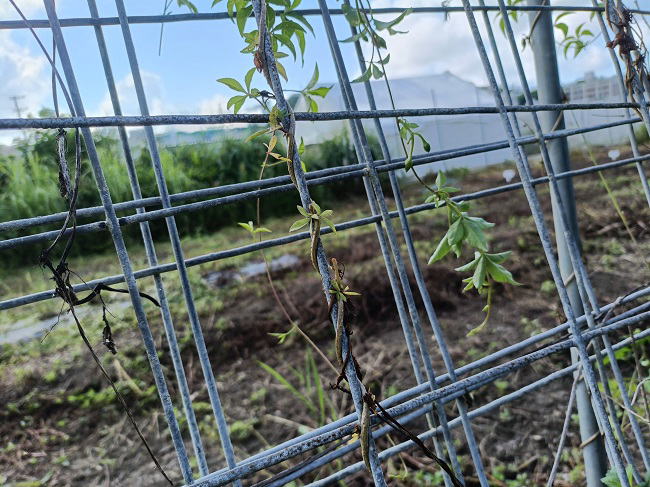 9月19日(金) ![]() ![]() 育苗中のメロンと食用ホオズキです。 本葉2枚目が出始めています。 ぶっちゃけ見間違うほど似すぎています。 メロンの種は種苗店で買ったから間違いないけど、 ホオズキの種は自家採取だからもしかしたらホオズキ違うかも... ![]() ニトベカズラが急速に生長しています。 マンゴーハウス屋根半分を覆ってしまっています。 マンゴーの光合成への影響が懸念されるのですぐにでも除去したいところです。 けど、仕事の優先順位を考えるともう少しあとになりそうです。 |