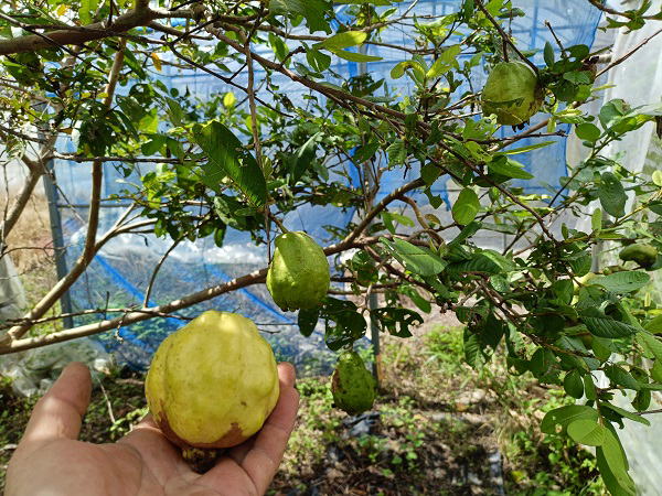 9月5日(金) ![]() ![]() 注文していた耕運機が届いたので早速試運転してみました。 花壇の土が物の数分、余裕で耕せました。 マキタの互換性バッテリーが2個ついて17000円台、 価格の割にはパワーがあって悪くはないかな。 プロ用には厳しいけど、家庭菜園用には一応合格点をあげたいと思います。 家庭菜園の植付準備完了です。 ![]() 久々にグヮバの木を見に行ったら実が鈴なりに生っていました。 黄色く熟していくつかは地面にポトリしてたので、 虫食いがないのを確認できたのを収穫していきました。 種があまり好きじゃないのでジュースにしていただきます。 |