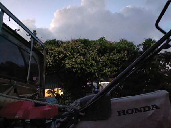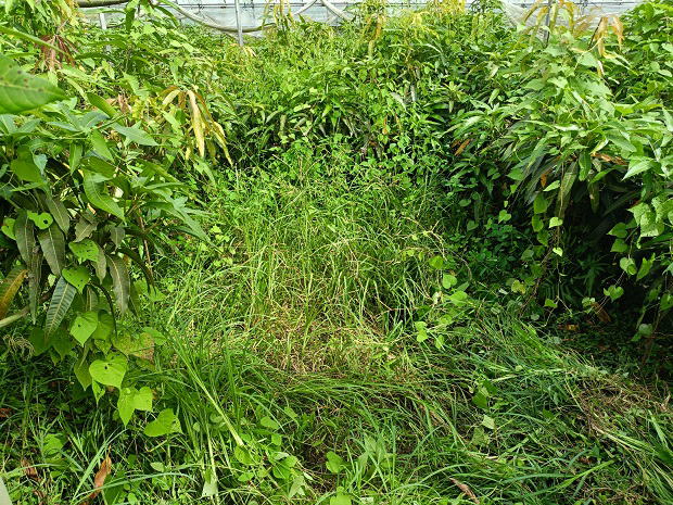 9月8日(月) ![]() マンゴーの剪定、切り戻し時に出た残渣の片付けをしました。 チッパーで細かく砕いて敷き草に、もしくは焼却処分、 お金を出して処分場へ持込の3択になるかと思います。 一時ハウス外に出しておいて時間に余裕ができたころにでも処理します。 ![]() バナナ園の様子を見に行ったけど... 雑草が先週比2倍にまで伸びていました。 高温、そして毎日一時的に降るにわか雨のおかげで、 雑草にとってはいい天候気候になっているようです。 猛暑の中草刈りしなきゃいけないと考えると頭がフラフラしてきた。 てか、このフラフラは暑さのせいかもしれない。 雑草ショックと体調不良のためバナナの様子を見ずに引き上げました。 |