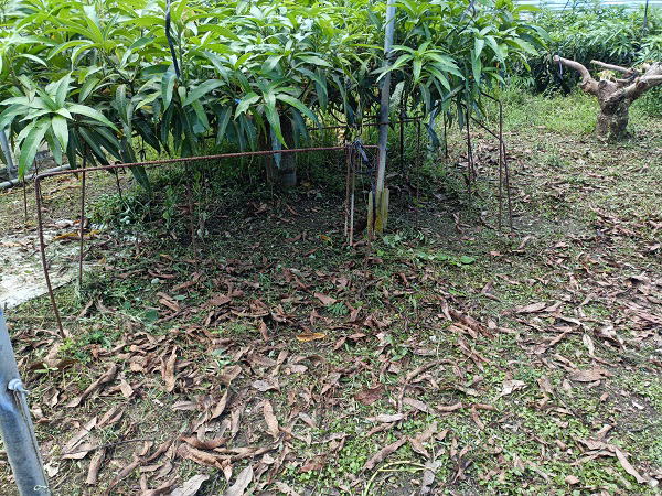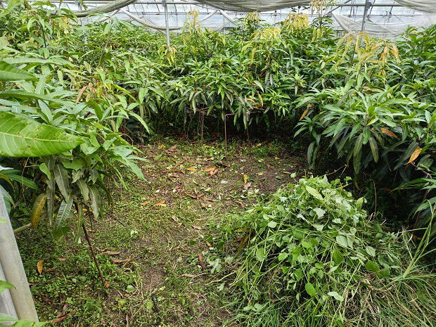 9月3日(水) ![]() ↓ ![]() マンゴーの枝を吊上げていた吊り紐の除去をしました。 生い茂った蔓草を新芽を折らないように丁寧にハサミで取り除く、 5本の木、約600本を取り除くのに5時間もかかってしまいました。 |