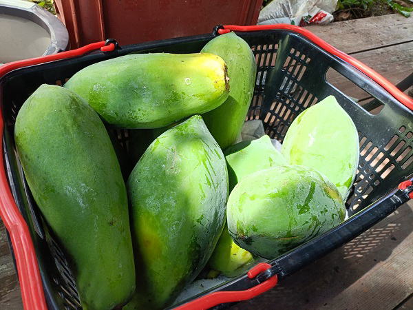 9月18日(木) ![]() 青パパイヤを収穫しました。 セグロウリミバエの影響か豊作だからか、 市場では安値で取引されているようです。 売れるかどうかは微妙だけど、 とりあえずファーマーズに出荷してみます。 ![]() 金蜜マンゴーが大暴れしています。 アーウィンマンゴーに接ぎ直す予定だったんだけど、 体調不良と忙しさ続きで結局接ぎ木する時間が確保できませんでした。 なので金蜜マンゴー、来年一年だけ復活します。 |