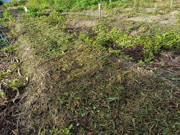 9月20日(土) ![]() ![]() マンゴーハウス周辺の芝刈りをしました。 高さ20p以下、朝露で湿ってもいない、 ロータリーモアにとっては好条件なので、 ストレスフリーでバンバン刈り取っていきました。 刈り取った雑草はいい感じにチップ状になっています。 菜園の敷き草に使えそうです。 |