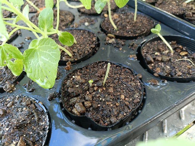 9月11日(木) ![]() ![]() 日曜日9/7に播種したメロンと食用ホオズキが 順調に発芽しいい感じに育っています。 土の乾燥さえ気を付ければ来月10月には 地植えできるまでには生長できそうです。 そして年内収穫を目標に育てていきます。 |
