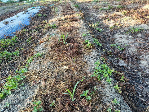 9月4日(木) ![]() トンボがめちゃ多い季節になった。 夜明けが遅くなりはじめ、朝方の気温も涼しくなってきた。 日中は相変わらずの日差しの強さだが、 季節は確実に秋へと向かっているようだ。 ![]() ![]() 試験圃場の除草をした。 ハウスのパイプに絡まっている蔓草を取り除いていった。 草刈機でできる範囲の雑草を刈り取っていった。 刈り取った雑草を畝の間に敷いていった。 ![]() 残りの作業は草刈と耕運・元肥、そして野菜の植え付け。 予定通り9月下旬には準備完了となりそう。 冬野菜の植付準備、着々と進んでいます。 |
