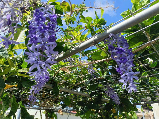 10月2日(木) 日曜日から続いていた頭痛はおさまった。 ちょっと鬱気味でだるさはまだ残っている。 気温の高いとこや直射日光に当たると体温が上昇する。 自律神経が不安定... 自己判断だが熱中症で間違いないだろう。 ![]() 庭の菜園の棚に這わしてあるペトレアが花を咲かせています。 数日で散ってしまうけど、それ以上に咲く花のほうが多いです。 10月が見ごろ?かもしれません。 |