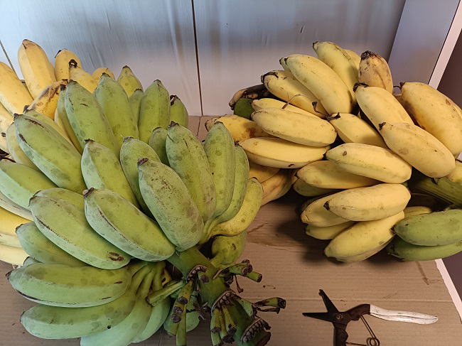 10月30日(木) ![]() 2日前に収穫したバナナが黄色く熟しました。 ナムワー系、もっちりしてておいしいバナナです。 バナナに関してはあまり利益を求めていないので、 即売り切りお手頃価格で値段設定にしました。 今週中に売れるといいな。 |