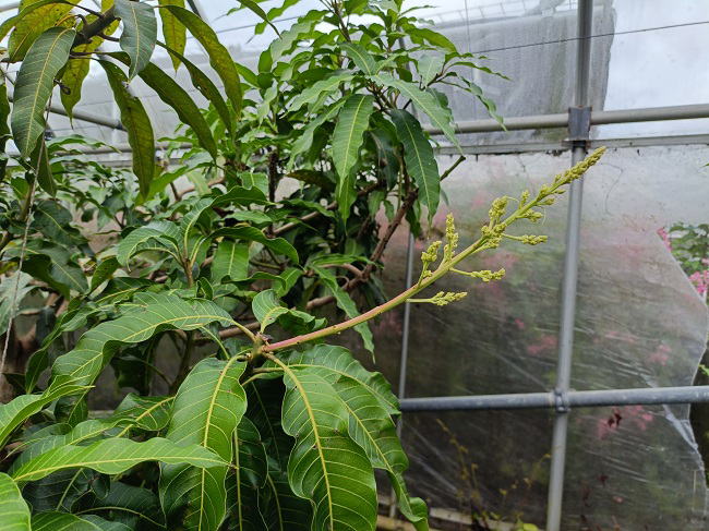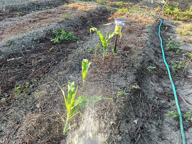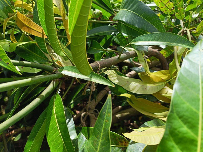 | 10月16日(木) ![]() ![]() まとまった雨が長らく降っていないのでいろいろと影響が出まくっています。 マンゴーハウス内の土がカチコチに固まって地割れができています。 タンクの水も雨が降らないので尽き欠けて水遣りができません。 買ってきた苗を植えようにも土にスコップの刃が刺さりません。 農家仲間からの悲鳴があちこちから聞こえてきています。 ![]() マンゴーの葉にスリップスが大繁殖しています。 今は新芽が少な目なので、とりあえず農薬散布はせずに耐えています。 今後、新芽が発生してスリップスがまん延しようものなら... その時は迷わず農薬散布をします。 |