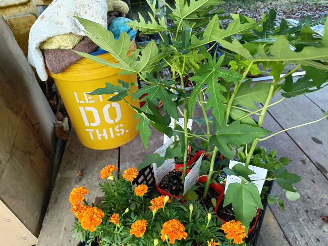 10月17日(金) ![]() コンパニオンプランツとしてローズマリーを買ってきた。 メロンの横にでも植え付ける予定です。 これから時季外れになるけどパパイヤの苗も購入した。 パパイヤ苗もローズマリーもどちらも10%OFF レジ生産時期気付いたのでちょっと得した気分だった。 |