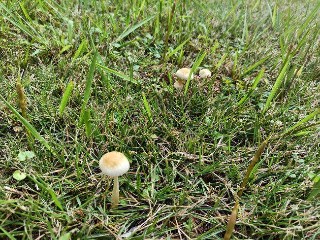 10月22日(水) ![]() 雨が止んだタイミングでマンゴー園の様子を見に行きました。 あれほどカチコチに固まって乾いていた土がいい感じに湿ってくれていました。 土のひび割れも完全になくなりました。 素晴らしい!有難い恵みの雨になってくれました! ![]() 庭の芝生にキノコが生えていた。 それ以上につくしっぽいのがうじゃうじゃ生えてきた。 土砂降りの雨に刺激されたのだろう。 来週また草刈りだな。 |