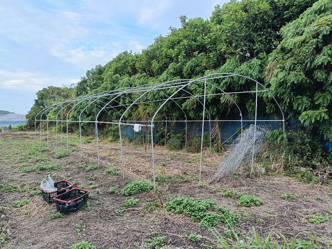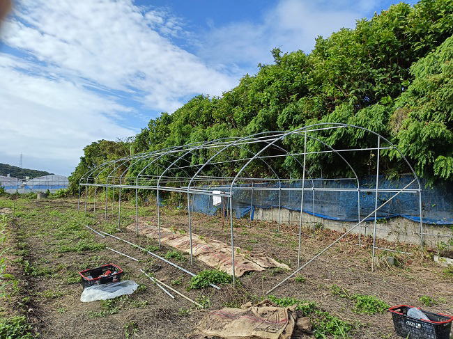 10月24日(金) ![]() ![]() 試験圃場のビニールハウスにネットを張るための準備、 パイプやビニペットの取付をしました。 資材や道具、金具類を前日に準備しておいたので段取りは完璧です。 おかげでスムーズに作業が進みミスなくイメージ通りに組み立てることができました。 あとはネットとビニールを張れば完成です。 このハウスは雨除けをして水分コントロールしたほうがいい作物を育てます。 ![]() ![]() うちの庭、出勤時は緑一色だったのに、 仕事を終え家に帰ると黄色い花が咲き乱れていました。 2日前のつくしっぽいヤツの正体はこの花だったんだね。 花が枯れるまではこの光景を楽しみたいと思います。 |