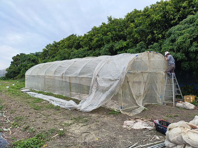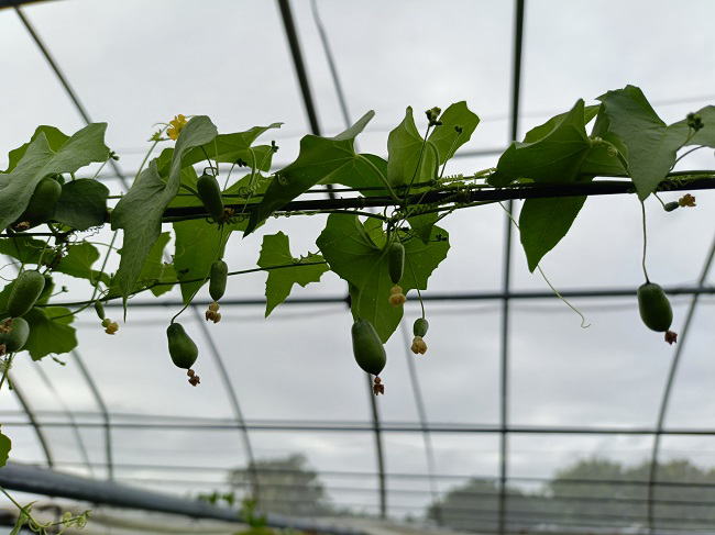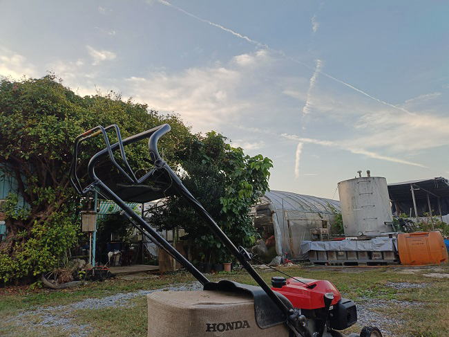 11月28日(金) ![]() ![]() たぶんカラスウリって名だろう。 マンゴーハウス内の吊り棚に這っていた。 蔓先の蕾から実になるまで だんだんと生長していく様が時系列で分かるのが見てて面白かった。 とはいえ雑草なので種を落とす前に回収して処分した。 ![]() 新古品のブルーネットをいただいた。 ブルーネットは虫を呼ぶ色ってことで農家からは敬遠されがち、 周辺のビニールハウスでの使用はあまり見かけない。 けど、農作物栽培以外でもいろいろと役に立つ。 フェンスの目隠しや日除けなどいろんな用途で使用できる。 要は使い方次第ってところです。 |