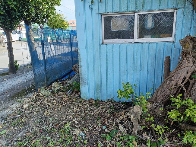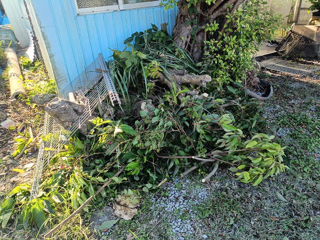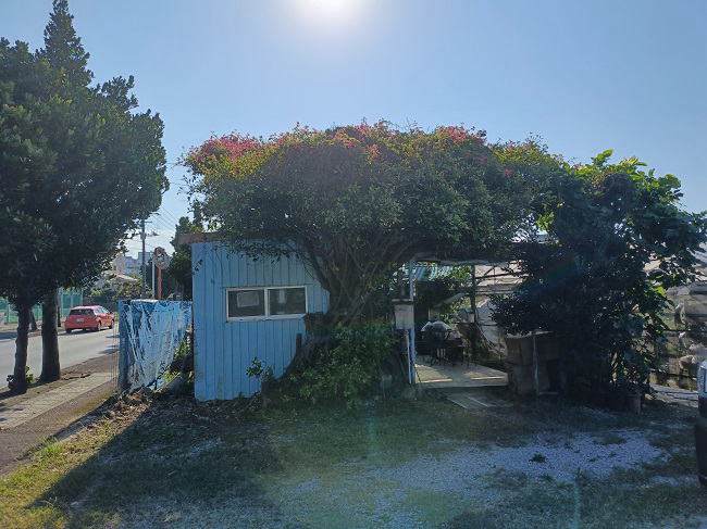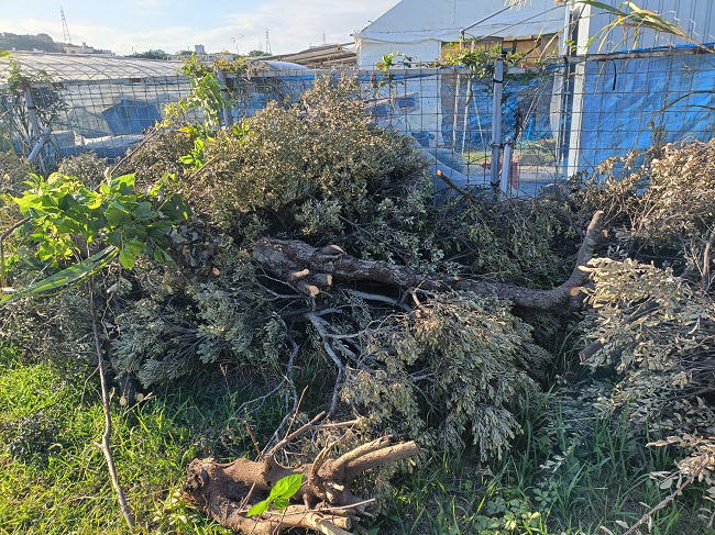 11月22日(土) ![]() ![]() 事務所横のガジュマルの木、2本あるうちの1本を伐採しました。 フェンスにめり込んで太く生長してしまったので、 一旦除草剤で枯らした後にチェーンソー等を使って細かく解体していきました。 わずか1u分にも満たないのスペースの木の伐採、 横に生えていた木も含め軽トラ荷台いっぱいの量になりました。 ![]() ![]() シンボルツリーのガジュマルが一本、 そして木上に這っているニトベカズラの花がいい感じです。 |