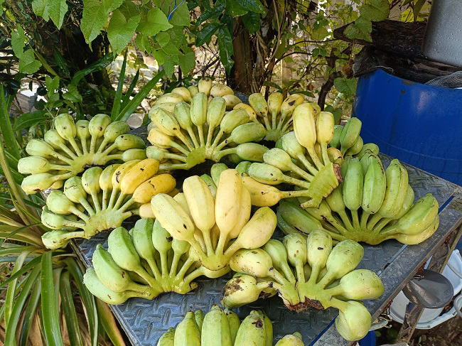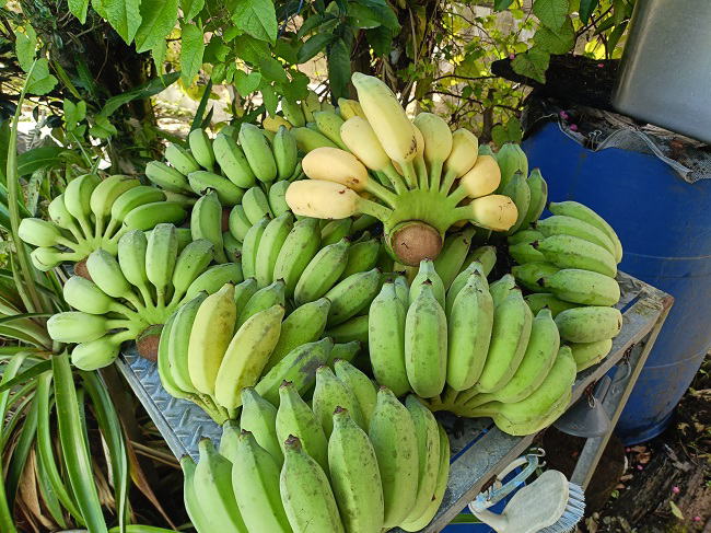 12月13日(土) ![]() アップルバナナを収穫しました。 まだ熟し始めたばかりなので房分けし水洗いして熟を待ちます。 |