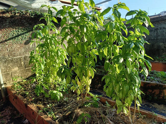 12月7日(日) ![]() 早朝、100羽ほどのサギがマンゴー園上空を通過、 そして2群め3群めと次々と通過していきました。 冬場時々しか見れないこの光景、圧巻です。 ![]() ![]() 家庭菜園の野菜やハーブたち、 気温が下がってきても元気に育っています。 特にバジルとシマナーは巨大化中です。 収穫して食べるのが間に合いません。 ![]() ゴーヤーは気温の低下に比例して生育の勢いが落ちてきました。 10月頃に自然発芽して勢いよく育っていたけどもう限界ですね。 収穫期12月だと...夏野菜は無理があったようです。 |