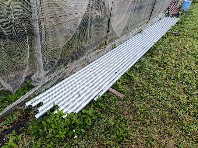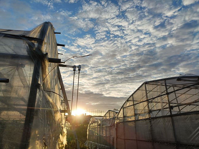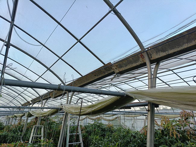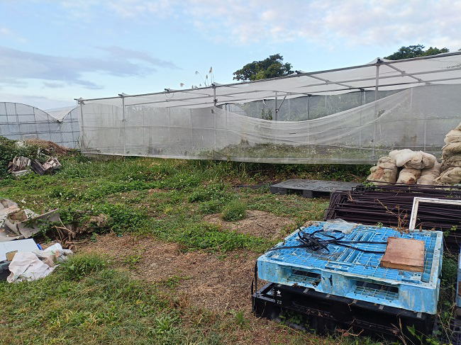 12月9日(火) ![]() 食用ホオズキにビニール囲いをしました。 このところの気温は日中は日差しの強さで高め、 夜は15度を下回るまあまあな寒さ。 沖縄なら冬に夏野菜の栽培も何とかなると思ったけど、 ホオズキの葉色がだんだんと薄くなりそろそろヤバそう。 ギリギリまで管理を頑張ってみるけど...今回は失敗に終わりそうです。 ![]() 第二マンゴーハウスのトイ取り換え工事が終わりました。 錆びて穴だらけで歩くのも超危険だったトイともさよならです。 老朽化ハウスの一番気になっていた箇所が補修されたので、 ストレス軽減、気持がだいぶ楽になりました。 |