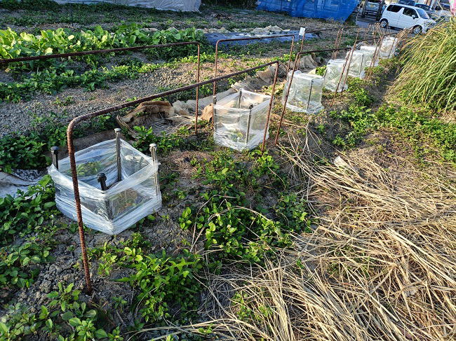 12月14日(日) ![]() ほぼ収穫し終えたレモンの誘引をしました。 屋根ネットを貫通するほど生長してしまったので、 マンゴー仕立て方式で低く抑えていきます。 正しいレモンの仕立て方かどうかは知らないけど、 自己流で管理していきます。 ![]() 日曜日の朝は試験圃場の管理の日です。 夜中に降った雨のおかげでカラカラに乾いていた土がいい感じになってくれました。 雑草には負けるけど秋に育てやすいレタス、キャベツ、大根は大きくなっていました。 夏野菜はダメ、特にメロンはかなり厳しい状態です。 気温が上がりだす4月頃にもう一度チャレンジとなりそうです。 |