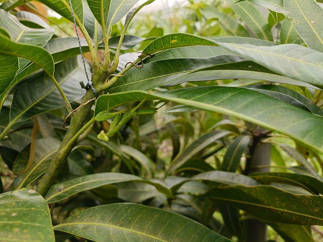 12月23日(火) ![]() マンゴーの誘引枝吊り作業が大幅に遅れています。 病み上がりというよりもまだ療養期間中、 体調と相談しながらなのでどうしても作業が捗りません。 まあ、生きているだけで有難いことなので、 リハビリと思って気長に焦らず作業を進めていきます。 ![]() ナムドクマイマンゴー、狂い咲きした2個の着果が確認できました。 その他枝先からも続々と花芽が伸び始めています。 毎年花を咲かせ実を着けてくれるのがメリット、 着果数少なめで思ったほど大きくならないのがデメリットかな。 自家消費用にはいいかもしれません。 |