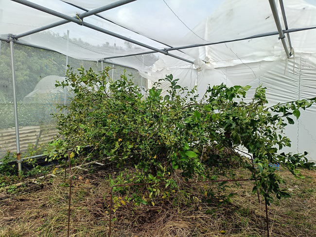 12月10日(水) ![]() 平張り柑橘ハウスにレモン苗が2つ仲間に加わりました。 品種はユーレカレモンです。 平張り柑橘ハウスの方向性もほぼ決まったので放任栽培はそろそろ終了かな。 来年からはちゃんと手入れをしていきます。 |