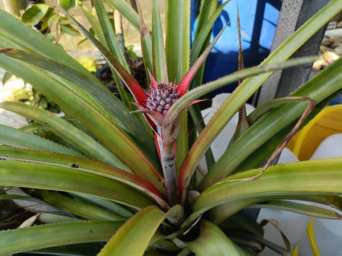4月1日(水) ![]() ![]() プリンスメロンと食用ホオズキの苗が 虫被害にあっていた メロンはウリハムシ 食用ホオズキはキドクガ幼虫 朝駆除しても昼にはまた発生している... 小まめな捕殺では駆除が間に合わないので 定植後は定期的に殺虫剤を使用していくことにする ![]() 鉢植え栽培パイナップルに 実が上がってきました 全部で3つ 確認できました 小苗を含めパイナップルは全部で10個 これだけあれば毎年楽しむことができそうです |