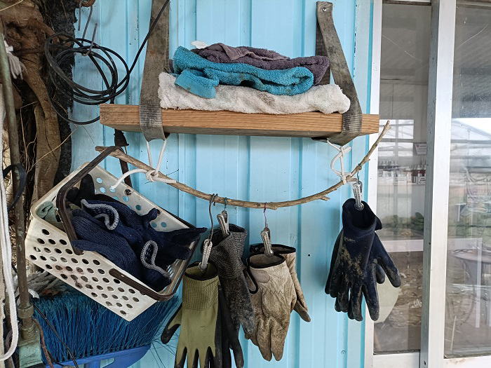 4月2日(木) ![]() 接ぎ木成功 ぐんぐん生長していたレモン ちょっと目を離した隙に ハモグリバエの被害にあっていた ほとんどの葉の中にもぐりこんでいる幼虫を確認 すべての幼虫を一匹も逃さず捕殺した 毎日見回りは時間がないので 柑橘類へは予防の薬散が必要のようだ ![]() ぼろ雑巾と手袋を無造作にあちこちに置かれ 前々から気になっていた ちょうど足場板の切れ端が手に入ったので 事務所外壁に棚を作ることにした その辺にあった平ロープを壁に固定 その中に足場板を掛けただけのシンプルな棚が完成 整理整頓&見栄えが少しは良くなったかな |