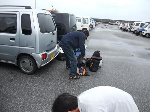 2009年 10月14日(水)くもり時々雨 PM 17:30 ランタンを忘れてしまったので日が落ちる前に調理開始そして終了しなければならない。 とは言っても包丁が1本しかないので魚を捌く担当はミツル君にお願いした。 7匹の魚を一人で3枚におろしていく やってみるとこれが意外と時間がかかるもんだ。 ![]() PM 18:00 ミツル君が魚を捌くのにもう少し時間がかかりそうなので売店へ行きビールを調達することにした。 ついでにミツル君にお使いをたのまれた。電灯を買ってきたほしいそうだ。 電灯は売っていなかった・・・ でも売店のおばちゃんに事情を話すと自宅から電灯を持ってきて貸してくれた。 電池が切れていた・・・電池は買うことにした。 ![]() PM 18:30 晩ごはんは昼間好評だった唐揚げ山盛り ワサビ味や味噌味、コショウ味とバリエーションも豊富だ。 ただ・・・同じ唐揚げでも臭くて食えない唐揚げがあった。 口の中がしに臭くなった・・・もう2度と食わないよトカジャー系は>< ![]() AM 00:00 前日同様、晩ごはんを食った後は夜釣りの向けて休憩時間 ちゃんと仮眠をとっておかないと朝5時のストップフィッシングまでもたないぞ。 やっぱり離島まできたら大物を釣りたい! 願わくば大物タマンを釣り上げるためここで1匹600円という高級エサ「シガヤータコ」を投入する。 AM3時・・・クチナジや小型のタマンがポツポツと釣れだし始めた。 この時点で数釣り勝負は全員7匹と並んでいる。 そして横一線を最初に抜け出したのはリーダー、8匹目を釣り上げた。 ここで天候が・・・土砂降りになって急激に冷え始めた(T_T) ミツル君は勝負をあきらめてとっととテントへ帰っていった・・・ 雨はどんどん大降りになっていった・・・ ![]() 2009年 10月15日(木) 雨 AM 7:00 朝まずめを待たずに雨のせいでAM4時にストップフィッシング・・・悔いが残る。 結局数釣り賞6000円はリーダーへ、残念ながら大物賞は該当者なしだ。 夜が明けても相変わらず雨が降っている。 やむ気配がない・・・ やむのを待っていてはフェリーの時間に間に合わないので濡れながら荷物やテントを片付けた。 ![]() AM 8:30 合羽をつけてフェリー乗り場へ向かう。 途中で昨日電灯を借りた売店へ行き電灯を返す。 ありがとう!アサトストアーのおばちゃん。 ![]() AM 9:30 フェリー乗り場へ到着。 着いた頃には雨がやんだ。 ![]() 津堅島のマップをみた。 自分達がいかに行動範囲が狭いかがわかる。 ![]() AM 10:00 フェリー待合所内の風景 ![]() AM 10:30 津堅島から2日ぶりに沖縄本島に帰還した。 駐車場に行き無事に解散となるところだったのに・・・ ミツル君の口から一言「車の鍵がない・・・」 リーダー&俺「・・・」 ![]() こうして2009年のサバイバルキャンプも無事に終了? その後、どうなったかは想像にお任せします(聞かないでっ)。 体力的にも精神的にも限界 毎年恒例の貧乏サバイバルキャンプは・・・そろそろ潮時かな。 |